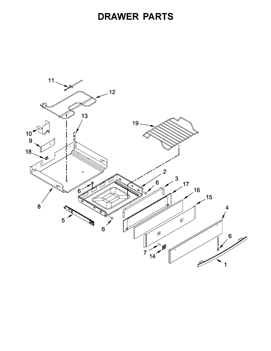 Replacement utility drawer assembly for ranges and wall ovens. Restores organized storage space under your appliance when original is cracked, broken, or worn.