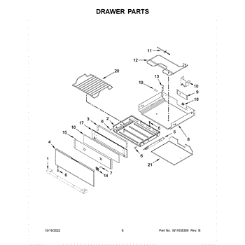 Replacement utility drawer assembly for ranges and wall ovens. Restores organized storage space under your appliance when original is cracked, broken, or worn.