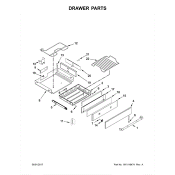 Replacement drawer slide for range storage drawers. Restores smooth gliding motion when original is bent, cracked, or worn. Ensures drawer opens evenly.
