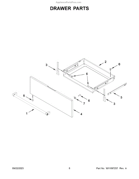 This right-side slide drawer supports and guides the refrigerator/freezer drawer so it opens and closes smoothly, restoring proper alignment and operation. Simple replacement can stop sagging, sticking, or noisy drawer movement. What it does