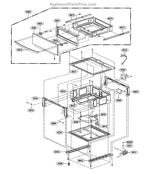This front plate is the outer trim panel that restores the appliance's appearance and protects internal components from debris and damage. It provides a clean, finished look and replaces scratched, dented, or missing front trim. What it does: