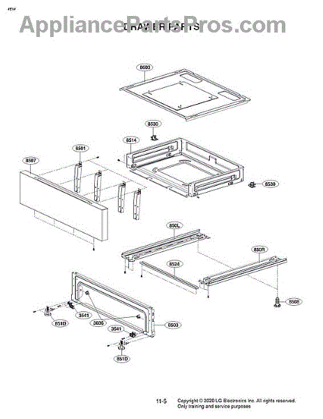 The Rail Guide is an OEM part for LG ranges. It directs the movement of adjustable storage drawers in and out of position for easy access.