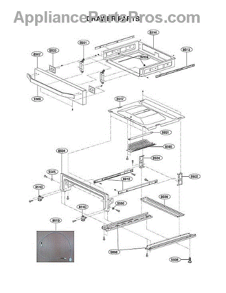 This OEM LG rail also fits select Kenmore and Frigidaire ranges.