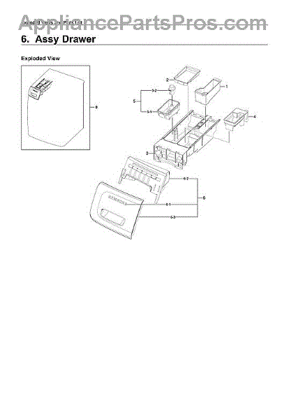 The Washer Body Drawer Assembly is designed to replace the damaged or worn drawer in your Samsung washer, ensuring optimal performance and functionality. This genuine OEM part guarantees a perfect fit and reliable operation for your appliance. Crafted with high-quality materials, the assembly provides smooth opening and closing of the drawer, enhancing your laundry experience. Compatible with a range of Samsung washer models, this Body Drawer Assembly helps maintain the integrity and efficiency of your machine. Installing this part restores your washer's storage capability, allowing for organized detergent and fabric softener compartments. By choosing the Washer Body Drawer Assembly , you ensure longevity and consistent performance of your Samsung washer. Easy to install, this genuine OEM part offers a hassle-free solution to common drawer issues, providing you with peace of mind and a fully functional appliance.
