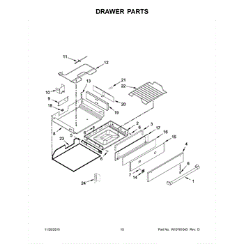 Replacement drawer panel front for range warming or storage drawers. Restores appearance when original is cracked, dented, or worn. Covers components.