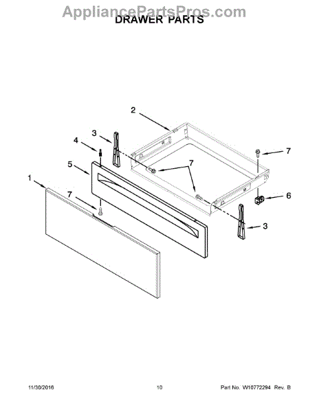 The Oven Glide Drawer is an OEM part for Whirlpool ovens. This component allows the storage drawer beneath the oven to slide smoothly in and out, providing convenient access to stored items such as bakeware and kitchen utensils.