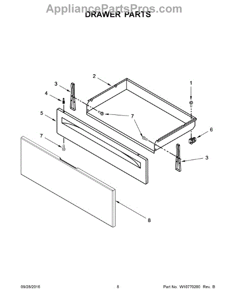 The Oven Glide Drawer is an OEM part for Whirlpool ovens. This component allows the storage drawer beneath the oven to slide smoothly in and out, providing convenient access to stored items such as bakeware and kitchen utensils.