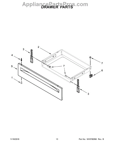 The Oven Glide Drawer is an OEM part for Whirlpool ovens. This component allows the storage drawer beneath the oven to slide smoothly in and out, providing convenient access to stored items such as bakeware and kitchen utensils.