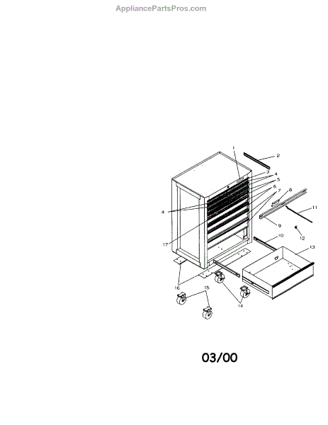 Parts for Craftsman 706653620: 9 Drawer Professional Roll-Away Parts
