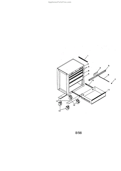 Parts for Craftsman 706659950: 5 Drawer Professional Roll-Away Parts