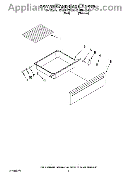 Includes two brackets part WP3801F813-51 to mount front panel to drawer. Front panel not included