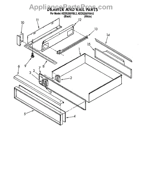 Parts for Kitchenaid KEDS200YBL2: 05 - Drawer And Rail Parts