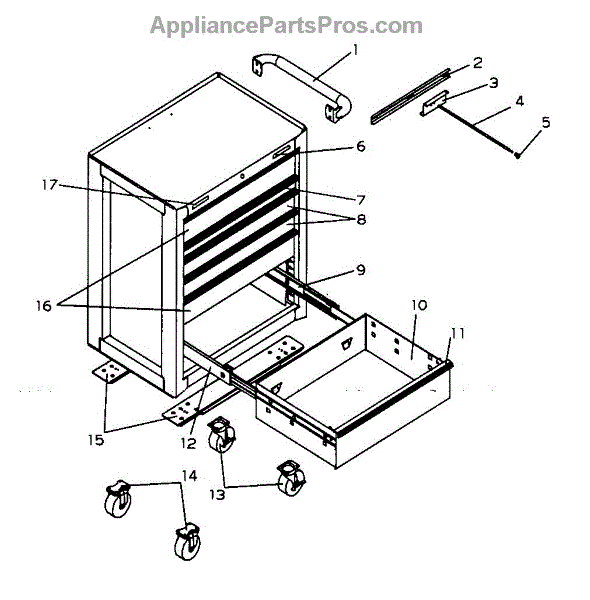 Parts for Craftsman 706592471: 6 Drawer Roll Away Parts