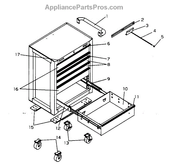 Parts for Craftsman 706598923: 6 Drawer Roll Away Parts