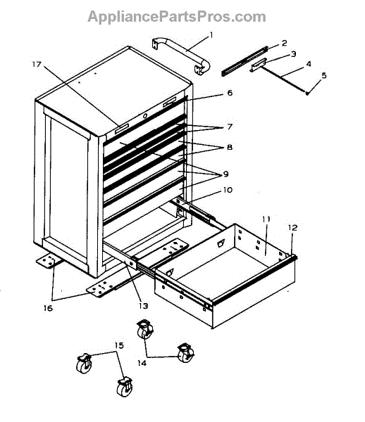 Parts for Craftsman 706598943: 8 Drawer Roll Away Parts