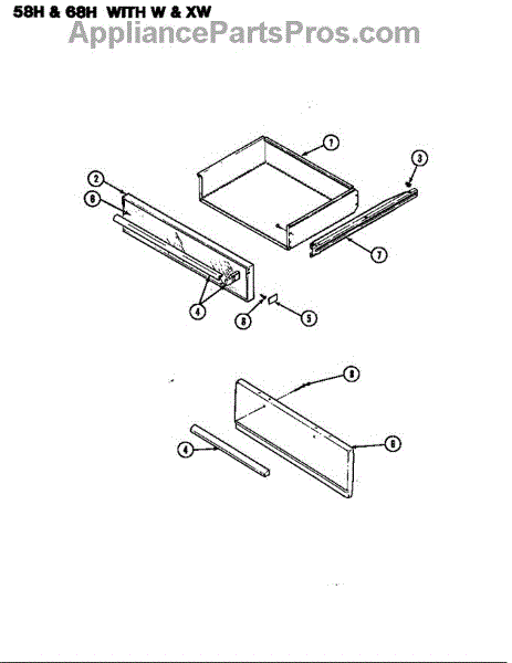 Parts for Magic Chef S58H-2CXW: Drawer (S58h-2Cxw) (58Ha-2Cxw) (58Hn-2Cxw) Parts