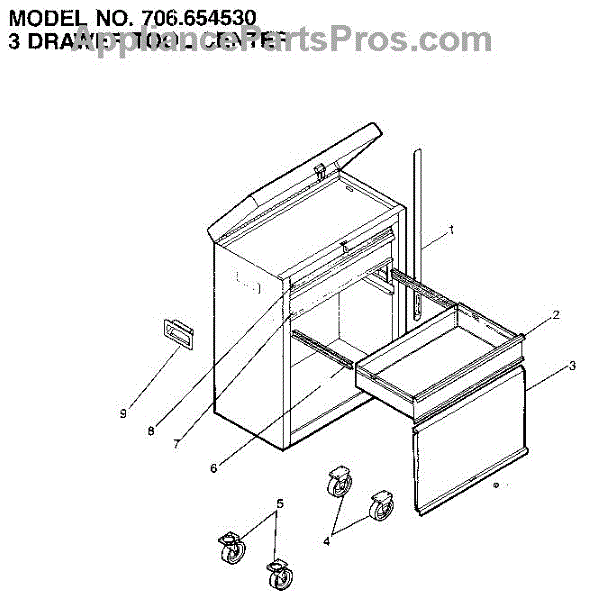 Parts for Craftsman 706654530: 3 Drawer Tool Center Parts
