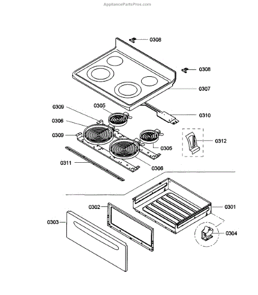 Parts for Bosch HES3023U/03: Drawer / Top Assembly Parts