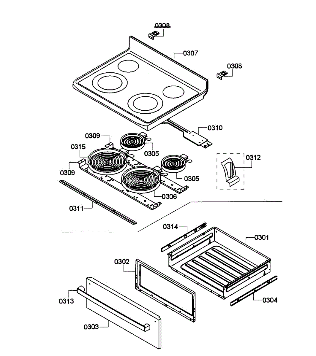 Parts for Bosch HES3053U/08: Drawer / Top Assembly Parts