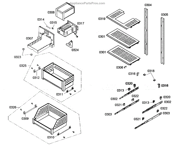 Parts for Bosch B24ID80NLP/01: Drawers Assembly Parts