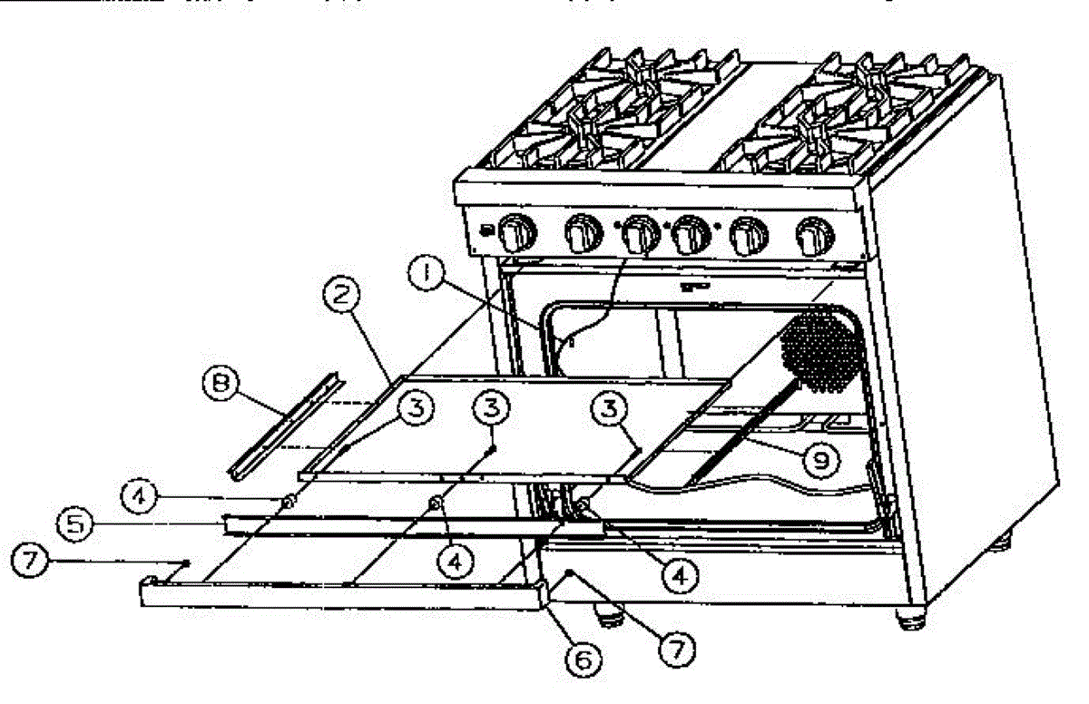 Left-hand drip tray runner for ranges. Replaces broken, warped, or missing drip tray support rails. Installs along the left side under cooktop.