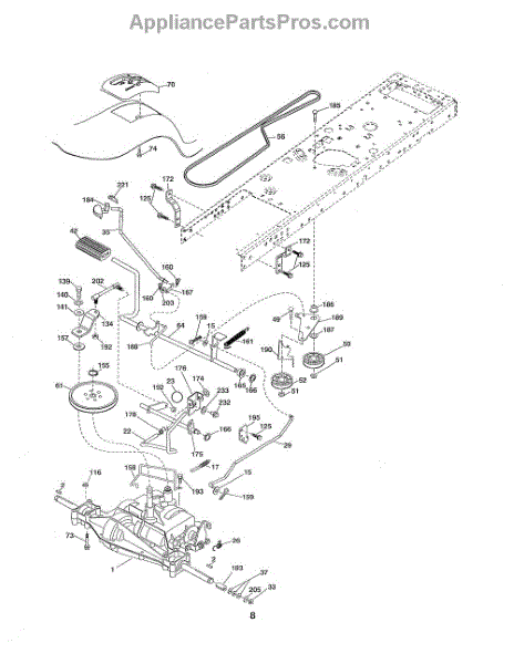 This is a genuine OEM replacement drive V-belt for a riding lawn mower. The drive V-belt attaches to the drive pulley and transfers rotational motion from the transmission to the mower blade. This causes the blade to then spin and cut grass. By using a belt to transfer motion, the engine does not have to work as hard to spin multiple parts, meaning that it runs more efficiently. Drive V-belts are made of a rubber composite material that will begin to fray and stretch over time. Due to continuous motion, these belts absorb a lot of wear and tear, and if left for too long, they can eventually snap and leave the mower blade non-functional. Therefore, it is wise to check the condition of a V-belt during regular maintenance. As soon as it appears to be wearing away, replace it with a new part using a nut driver and screwdriver. When detaching the lower deck, be sure not to lose the bolt clips, as they are required for reassembly. As a high-quality replacement part, this drive V-belt is directly sourced from its original manufacturer. It is compatible with riding lawn mowers made by Husqvarna, Poulan, Craftsman, and Jonsered. This part ships individually.