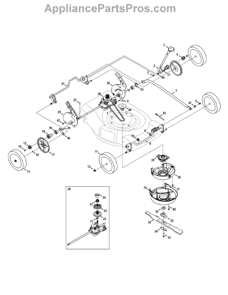 This part is a transmission assembly that is used on walk-behind lawnmowers. This transmission assembly is a complete replacement part that includes the pulley and internal gears. A transmission transfers the power from the engine to the wheels to move the machine forward.A new transmission assembly will be needed if the machine is not responding, making odd sounds, leaking fluid, shaking or vibrating excessively, or won't go into gear. The transmission assembly may require replacement due to normal wear and tear over a period of time. Allow the lawnmower plenty of time to cool down before attempting to perform any care or maintenance on the machine.This transmission assembly is a genuine MTD part. It is sold individually. This particular transmission assembly is compatible with walk-behind lawnmowers that are manufactured by the MTD brand and the Troy-Bilt brand as well as Columbia.