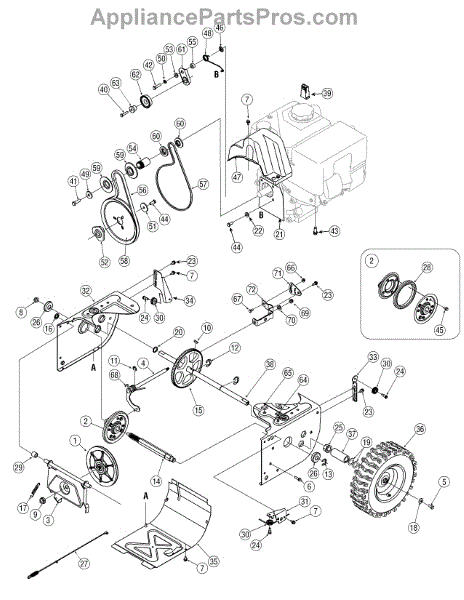 This part is a replacement friction wheel assembly. It is intended to replace a defective or broken friction wheel assembly in snow blowers.The friction wheel works with the friction disc to turn the drive wheel axle. This part is essential to proper equipment functionality but may be damaged with regular equipment usage. Before beginning this repair job, disconnect spark plug. Wear work gloves to protect the hands and check that equipment is powered off and cooled down before beginning. This friction wheel assembly is a genuine MTD OEM part made of durable materials and is sold individually. It is suitable for use with snow blower models that have been manufactured by MTD, Craftsman, Troy-Bilt, and some other brands.