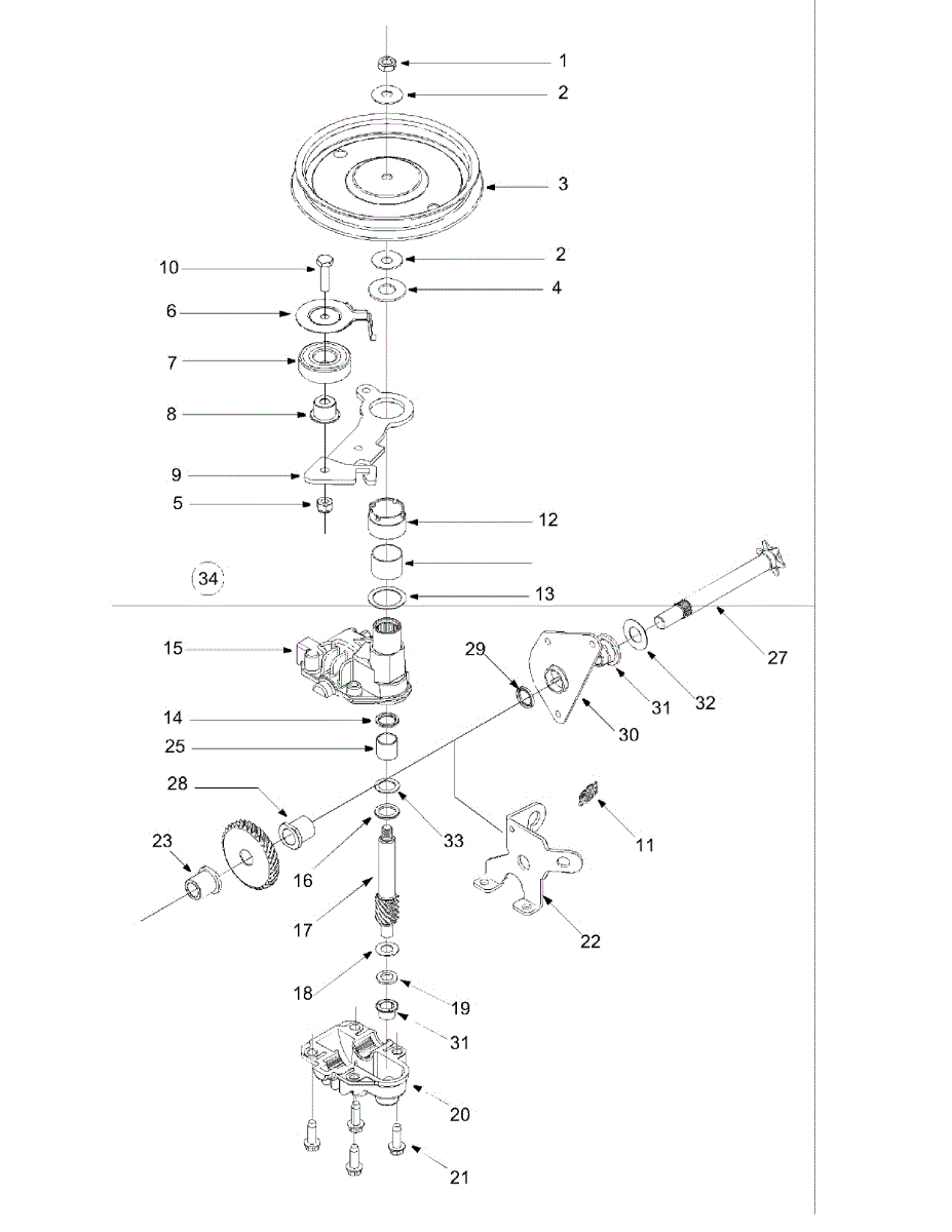 Fix mower propulsion issues with this 34-tooth gear. Restores self-propelled drive system function. Common repair for wheel engagement problems.