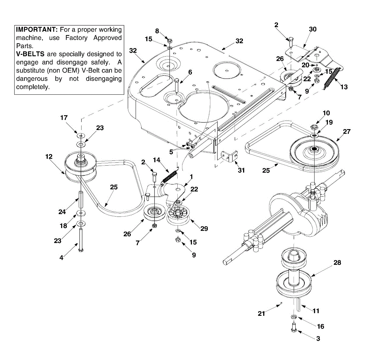 Drive belt for lawn tractors and riding mowers. Replace if you notice slipping, cracking, or loss of power. Confirm fit with your model number.