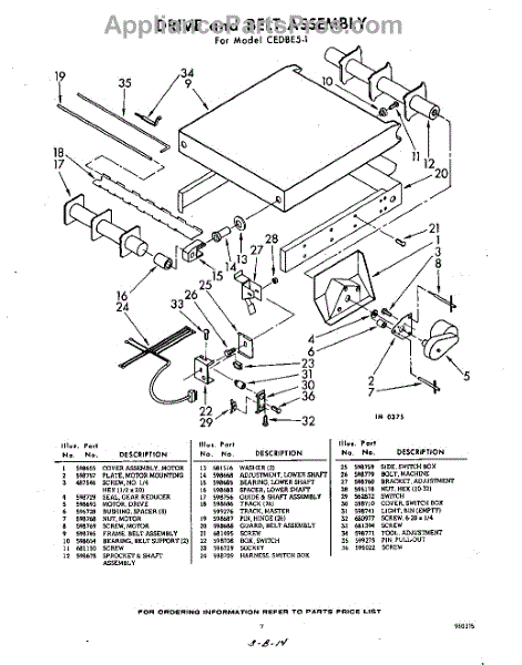 Parts for Whirlpool CEDBE51: 07 - Drive And Belt Parts