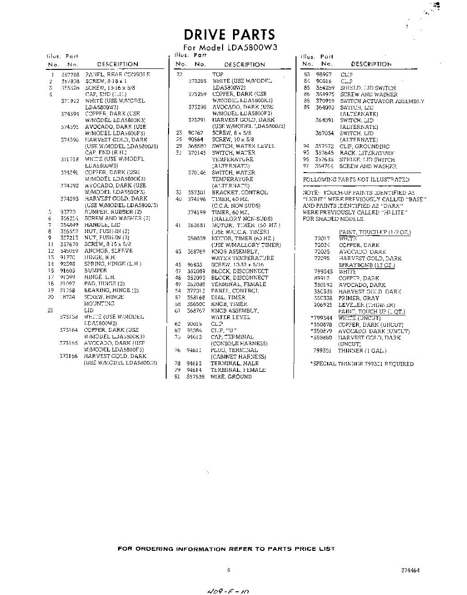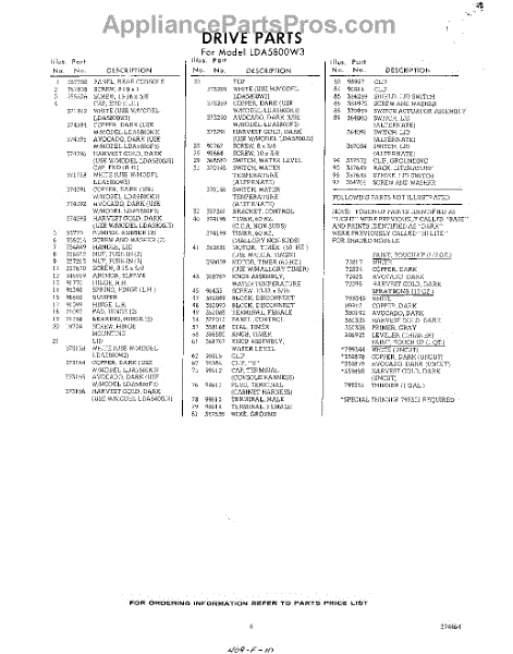 Parts for Whirlpool LDA5800W3: 05 - Drive (Continued) Parts