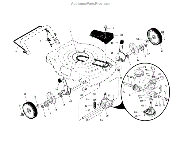 Parts for Craftsman 917375502: Drive Control / Gear Case / Wheels Parts