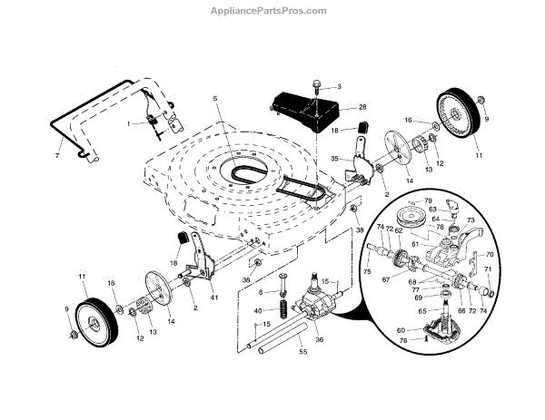 Parts for Craftsman 917375621: Drive Control / Gear Case / Wheels Parts