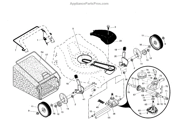 Parts for Craftsman 917376091: Drive Control / Gear Case / Wheels Parts