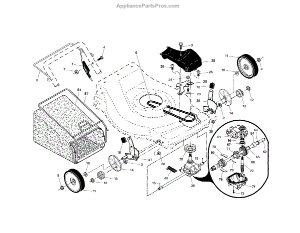 Parts for Craftsman 917376721: Drive Control / Gear Case / Wheels Parts