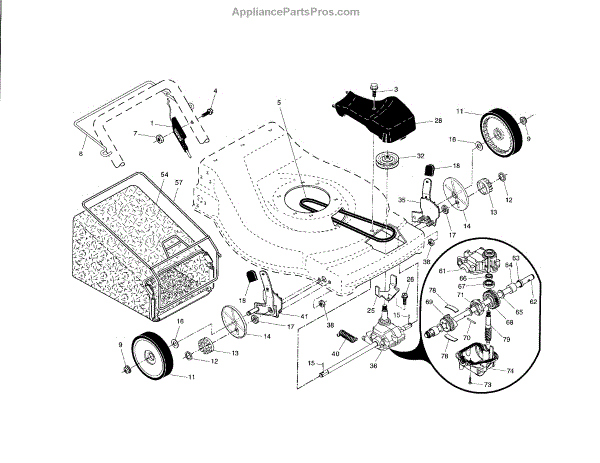 Parts for Craftsman 917376734: Drive Control / Gear Case / Wheels Parts