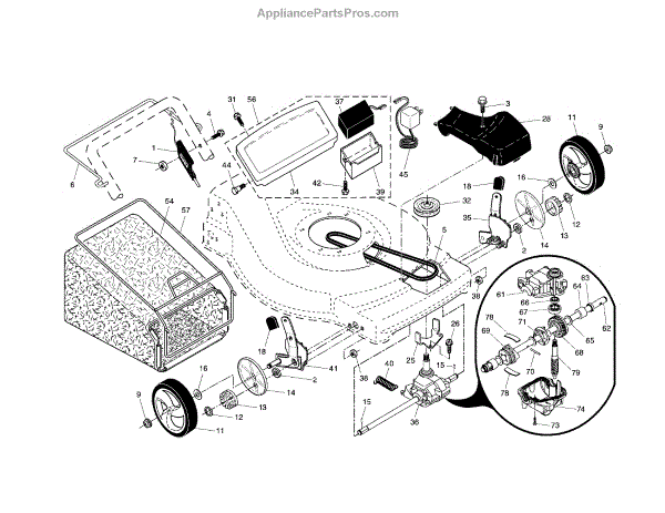 Parts for Craftsman 917376744: Drive Control / Gear Case / Wheels Parts