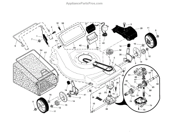 Parts for Craftsman 917376746: Drive Control / Gear Case / Wheels Parts