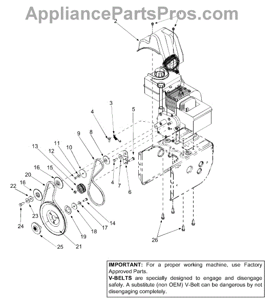 This part is a replacement auger pulley. This is a genuine OEM part made by MTD and has been sourced directly from the manufacturer. This part's intended use is to replace a broken or defective auger pulley in snow blowers.The auger pulley rotates the snow blower's auger blades by connecting the auger gearbox to the equipment's drive belt. This part is critical for proper functionality and thus will require replacement if faulty. When working on or near an engine, it's important to make sure the equipment is powered off and completely cooled down before starting any repairs. For more accurate information on how and where to install this auger pulley, reference the appropriate owner's manual and specific equipment diagrams.This is an authentic OEM replacement part made of high-quality materials. This auger pulley can be used with different models of snow blowers that have been manufactured by MTD, Craftsman, Ryobi, and other brands. Part sold individually.