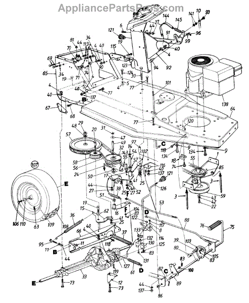 Parts for Yard Machines 13AH451F088 / 1997: Drive / Frame Assembly / Pedal Assembly / Wheels, Rear Parts
