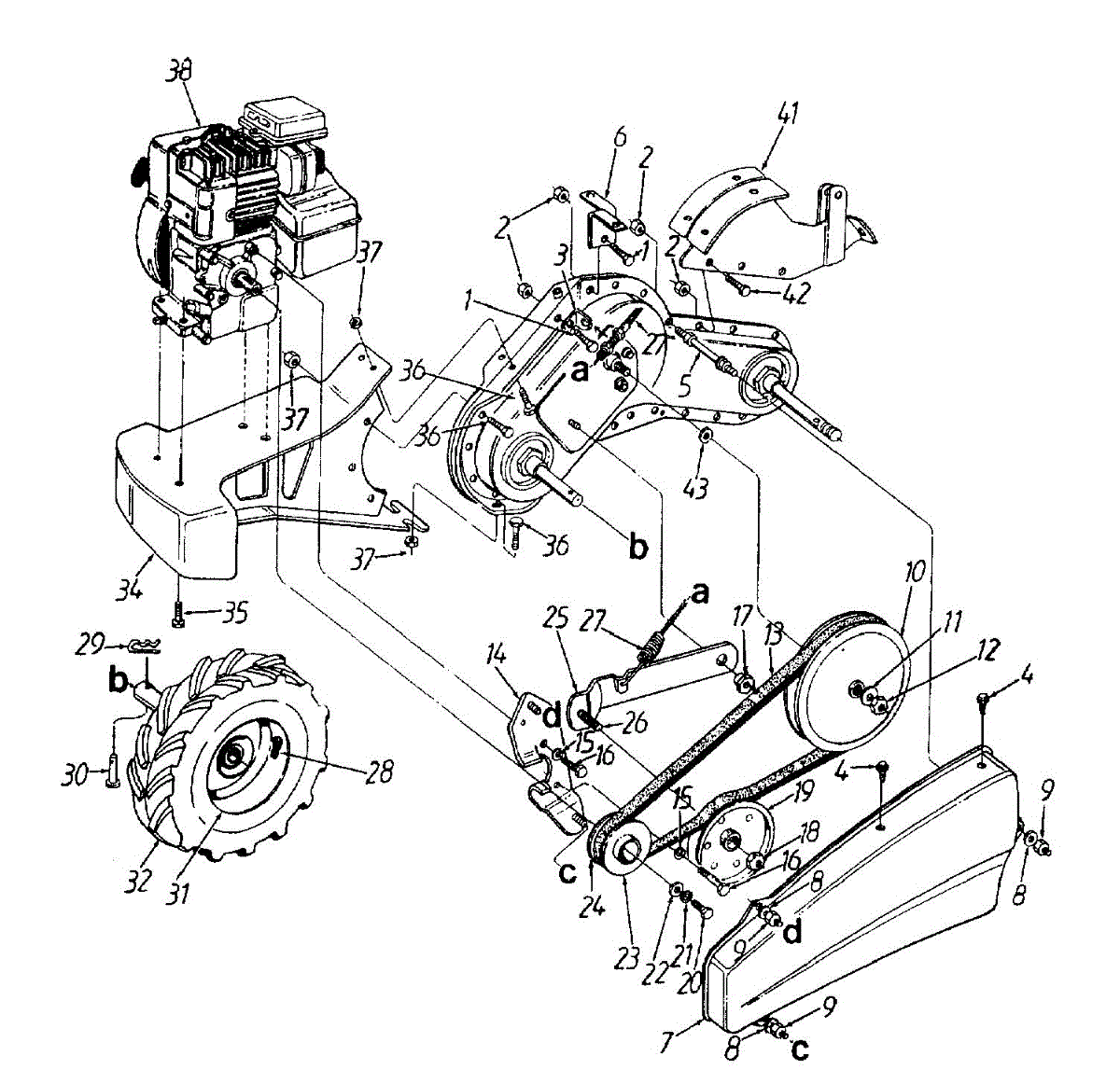 Complete wheel assembly for rear-tine tillers. Replaces damaged, cracked, or worn wheels. Includes all components for full wheel replacement.