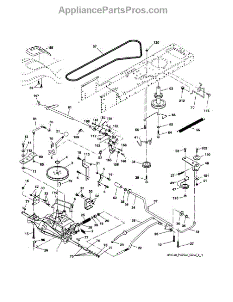 This is a genuine OEM replacement drive V-belt for a riding lawn mower. The drive V-belt attaches to the drive pulley and transfers rotational motion from the transmission to the mower blade. This causes the blade to then spin and cut grass. By using a belt to transfer motion, the engine does not have to work as hard to spin multiple parts, meaning that it runs more efficiently. Drive V-belts are made of a rubber composite material that will begin to fray and stretch over time. Due to continuous motion, these belts absorb a lot of wear and tear, and if left for too long, they can eventually snap and leave the mower blade non-functional. Therefore, it is wise to check the condition of a V-belt during regular maintenance. As soon as it appears to be wearing away, replace it with a new part using a nut driver and screwdriver. When detaching the lower deck, be sure not to lose the bolt clips, as they are required for reassembly. As a high-quality replacement part, this drive V-belt is directly sourced from its original manufacturer. It is compatible with riding lawn mowers made by Husqvarna, Poulan, Craftsman, and Jonsered. This part ships individually.