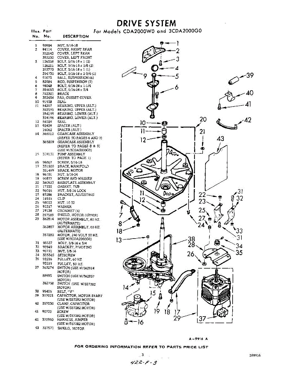 Parts for Whirlpool 3CDA2000G0: 03 - Drive Parts