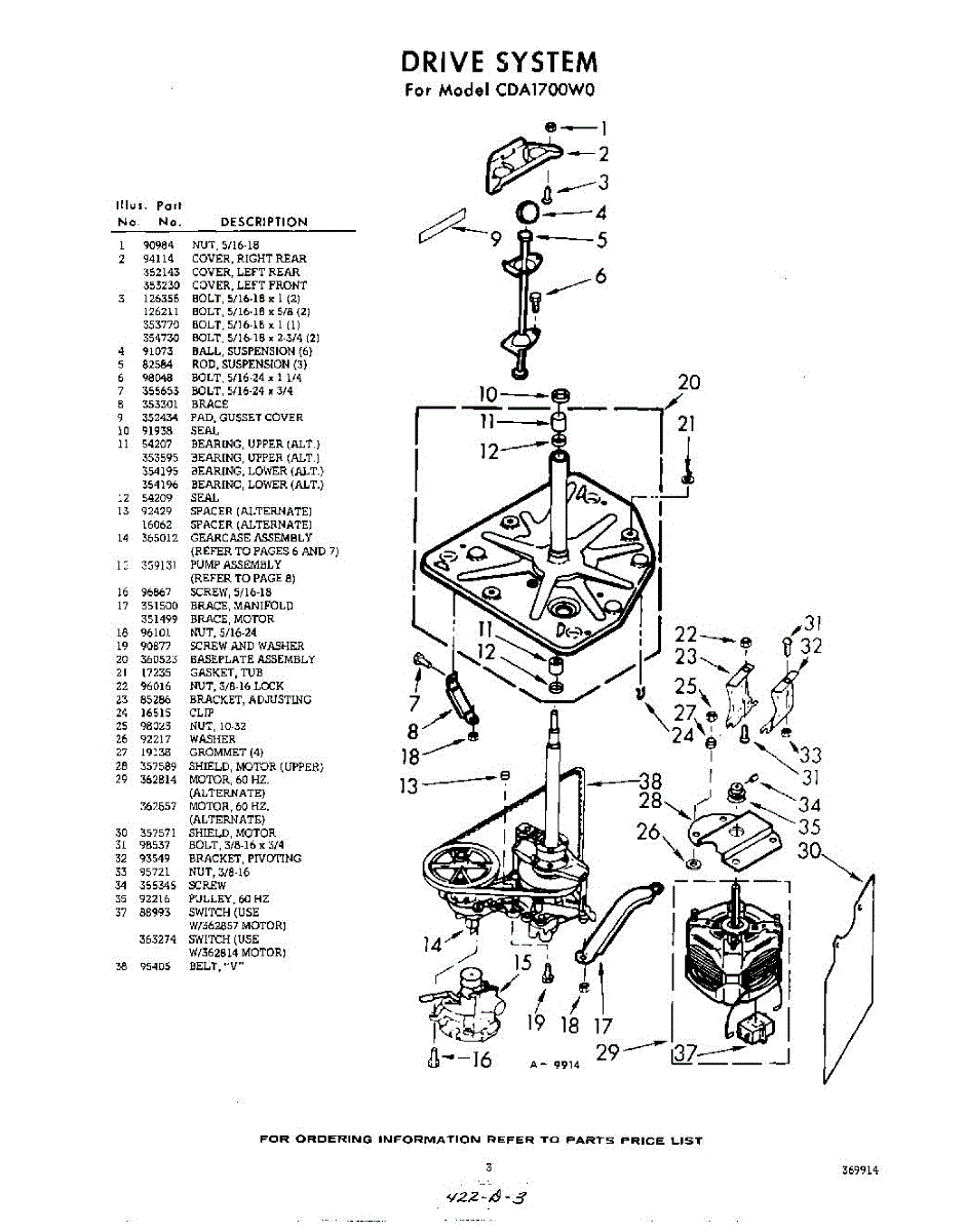 Parts for Whirlpool CDA1700W0: 03 - Drive Parts