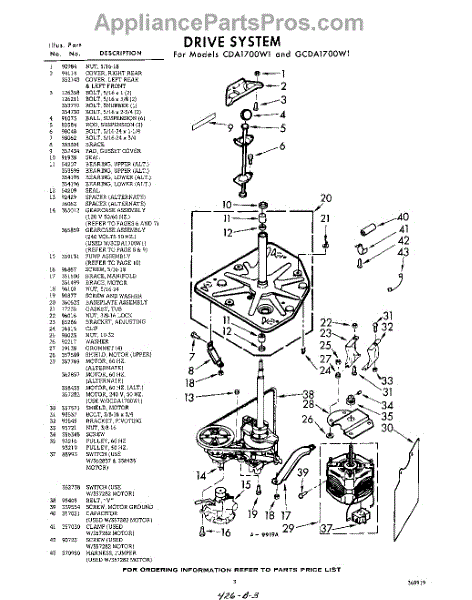 Parts for Whirlpool CDA1700W1: 03 - Drive Parts