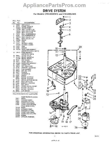 Parts for Whirlpool CWA2004W0: 03 - Drive Parts