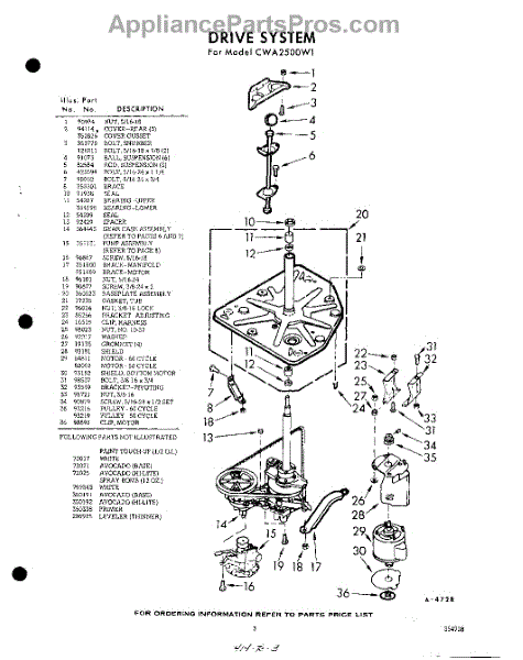 Parts for Whirlpool CWA2500W1: 03 - Drive Parts