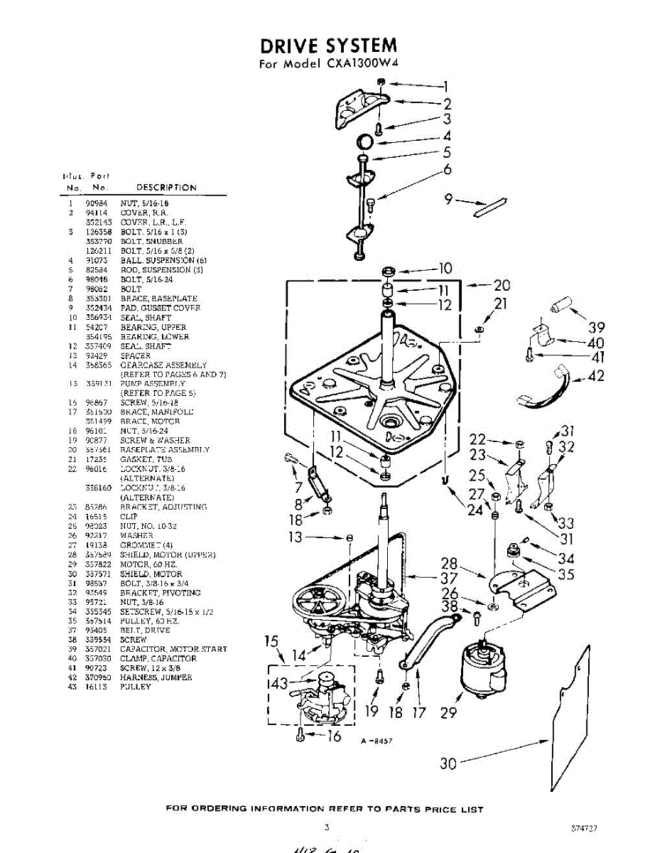 Parts for Whirlpool CXA1300W4: 03 - Drive Parts