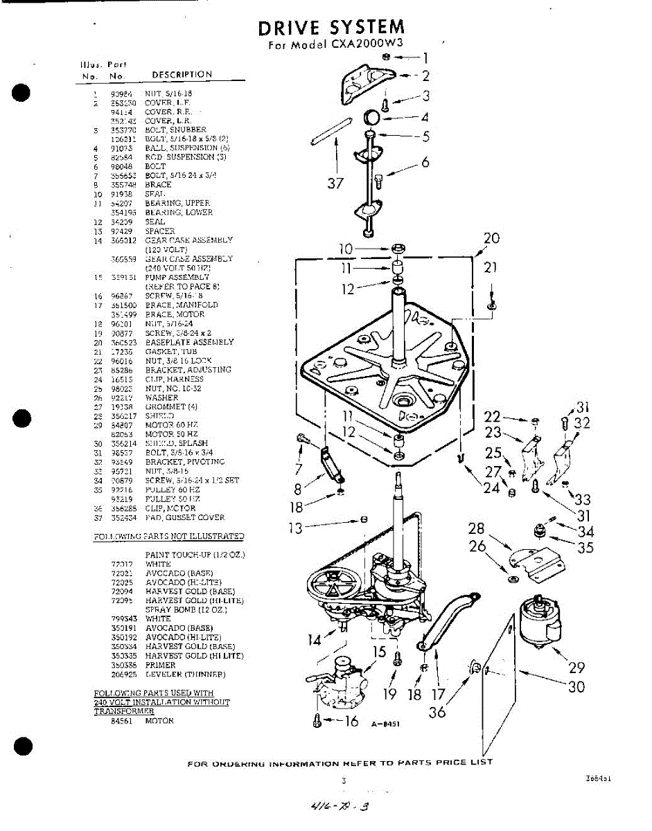 Parts for Whirlpool CXA2000W3: 03 - Drive Parts